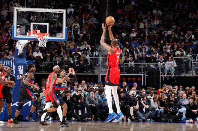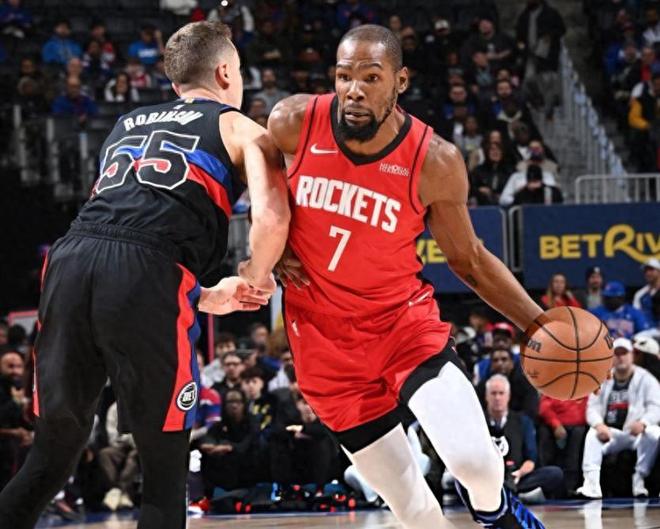 那段时间场上阵容是谢泼德和阿门搭档后场,史密斯、杜兰特以及中锋卡佩拉。这个组合攻守兼备:卡佩拉多次封盖活塞上篮,谢泼德外线开火,阿门冲击内线,杜兰特甚至不用频繁出手,就能靠队友吃饼得分。火箭一度将分差拉开到14分,看似大局已定。然而,末节风云突变。杜兰特短暂下场休息的两分钟内,活塞打出10-1的小高潮,一度将比分迫近到3分。乌度卡赶紧把杜兰特重新换上,没过多久又把申京撤下,重新启用卡佩拉稳固内线。火箭这才重新建立起7分领先。但活塞始终没有放弃,最后时刻依然让火箭捏了一把冷汗。