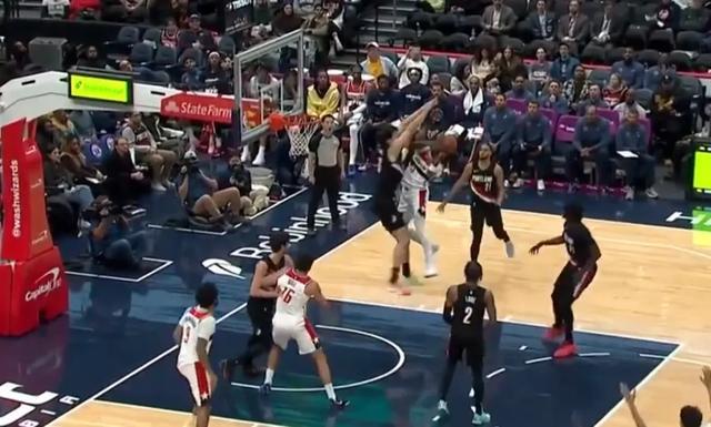 今天上来杨瀚森的两次护筐做得非常不错,都干扰了对手的上篮,几个后场篮板虽然没有直接拿在手里,但也都是因为杨瀚森的高度才保护下来。