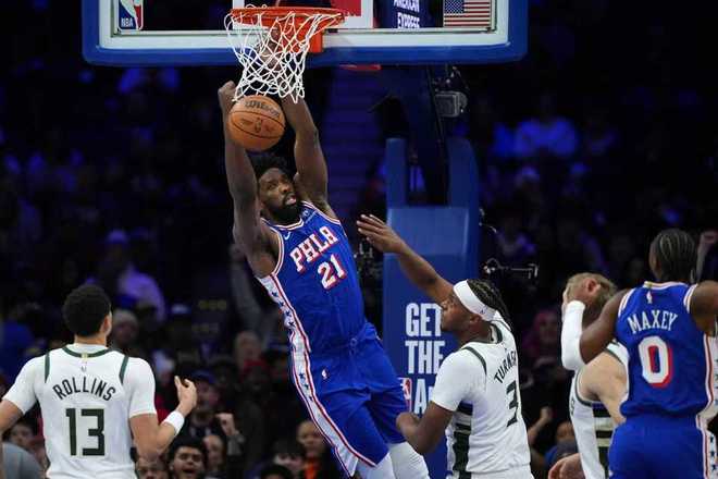 前一场37分爆冷惨败给黄蜂队后,76人队背靠背迎来与雄鹿队的较量,本场76人队迎回恩比德与乔治双核,最终以139-122大胜缺少字母哥的雄鹿队。