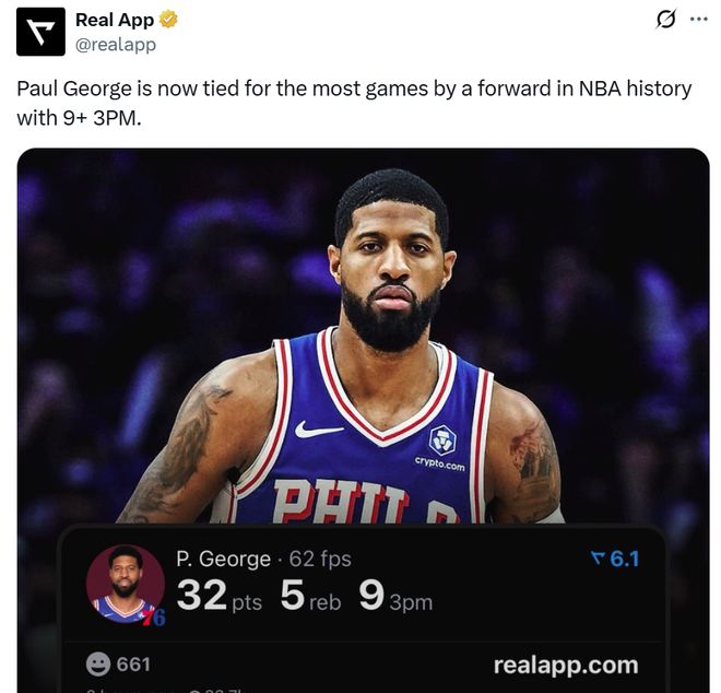 乔治9记三分+大帝梦回巅峰!探花与魔仙齐暴走76人超上季总胜场