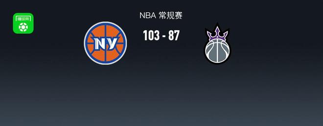 第四节尼克斯布伦森拿下11分,国王德罗赞拿下6分,最终尼克斯103-87战胜国王