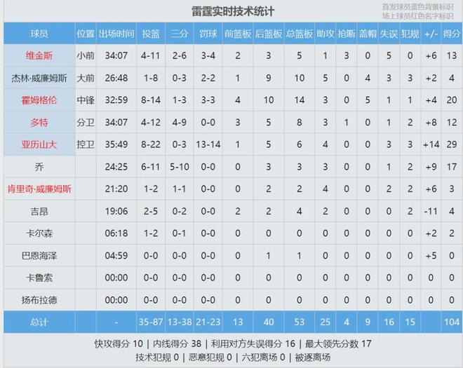 接下来看看球员数据:雷霆当家球星亚历山大出战35分钟,22投8中,三分3中0,罚球14中13,得到29分6篮板4助攻3失误3犯规,正负值+14全场最高。亚历山大已经连续118场得到20+,距离张伯伦的历史纪录只差8场了。