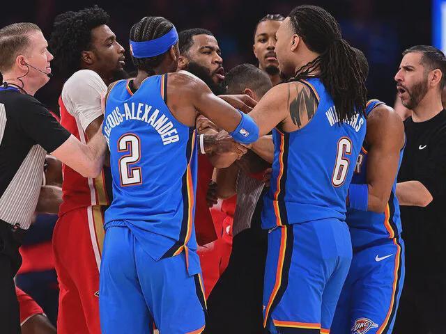 末节还剩1分18秒,鹈鹕落后7分。雷霆球员杰林-威廉姆斯和鹈鹕球员萨迪克-贝互相推搡,裁判各打五十大板,给了双方技术犯规。当然,这次冲突只是小场面,在NBA比较常见。末节最后1分钟,亚历山大连得4分杀死比赛。