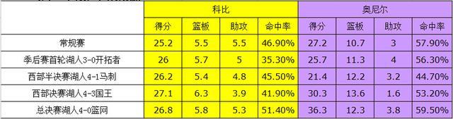 上边二张表,是湖人队在2000-01賽季和2001-02賽季NBA常规赛与NBA季后赛期内,科比奥尼尔的数据对比,二零零一年NBA季后赛冲出中西部的三轮交锋,科比·布莱恩特的系列产品比赛场均评分分别是25分、35分与33.5分钟,二零零二年中西部突出重围的三轮赛事,科比·布莱恩特的系列产品比赛场均评分是26分、26.2分与27.一分,攻防一体的科比·布莱恩特便是奥尼尔身旁最好輔助。
