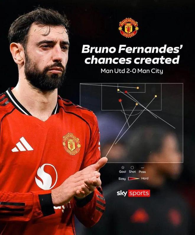 天空体育:B费成为第一位在英超联赛面对瓜迪奥拉的曼城时创造4次重大机会的球员。