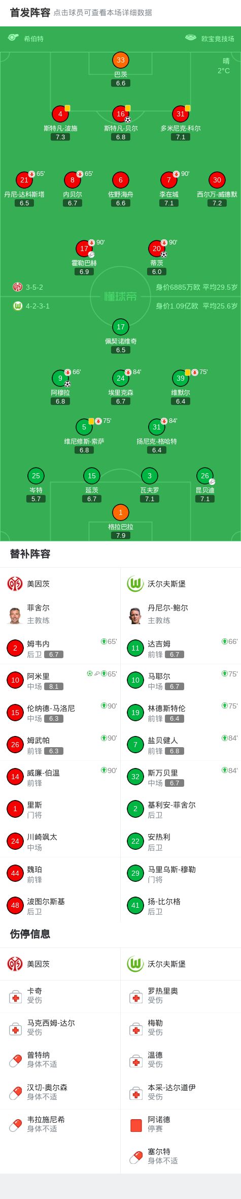 美因茨31逆转沃尔夫斯堡,阿米里替补1射1传,斯特凡贝尔破门