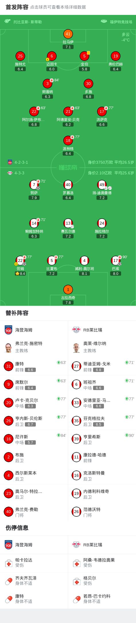 莱比锡客场30海登海姆,巴库破僵,努萨、劳姆破门