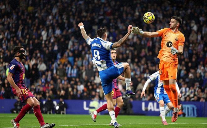 虽然实力不如巴塞罗那,但是开局之后,西班牙人的攻势却丝毫不弱,不到十分钟的时间,无论是定位球还是反击,已经数次威胁到了霍安加西亚把守的球门。第20分钟,西班牙人中场断球直塞,罗伯托费尔南德斯形成单刀,推射被霍安加西亚神勇扑出!巴塞罗那逃过一劫。而回追的赫拉德马丁在对手的铲抢下,重重击中肩膀令人心头一震。