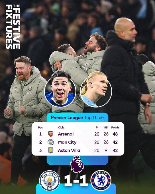 英超 曼彻斯特城 1-1 切尔西