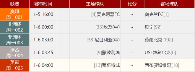 其他赛事比分: