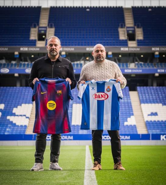 当地时间本周五,巴萨官方在社交媒体上晒出了弗里克与西班牙人主帅马诺洛-冈萨雷斯进行的合影,两人举着各自球队的球衣,这是加泰德比赛前的传统环节。