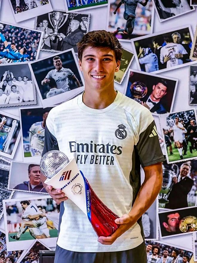 2004年出生的贡萨洛·加西亚是马德里本地人,12岁时加入皇马青训营。虽然早在2023-24赛季就代表皇马上演一线队首秀,还曾在上赛季国王杯对阵莱加内斯一战替补出场攻入读秒绝杀进球,但贡萨洛真正进入人们视野,还是在去年夏天的世俱杯赛场。当时姆巴佩因肠胃炎缺席世俱杯开局阶段,刚刚上任皇马主帅的哈维·阿隆索将信任票投给了这位小将。