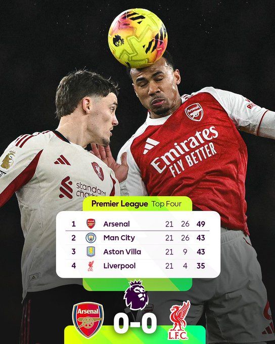 北京时间1月9日04:00,英超联赛第21轮,阿森纳坐镇酋长球场迎战利物浦。上半场布拉德利中横梁,利物浦0射正,两队暂0-0战平;下半场因卡皮耶伤退,最终阿森纳0-0利物浦,5连胜遭终结,6分领跑积分榜。