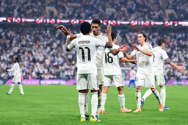 马竞上轮联赛被皇家社会逼平,继续稳稳排在联赛前四,赛季首回合的马德里德比,马竞5:2取得大胜。姆巴佩还未伤愈,上轮联赛上演帽子戏法的贡萨洛-加西亚继续首发与维尼修斯、罗德里戈、贝林厄姆搭档进攻线;楚阿梅尼、卡马文加双后腰;巴尔韦德回撤与劳尔-阿森西奥、吕迪格、卡雷拉斯组成后防线,库尔图瓦镇守球门。