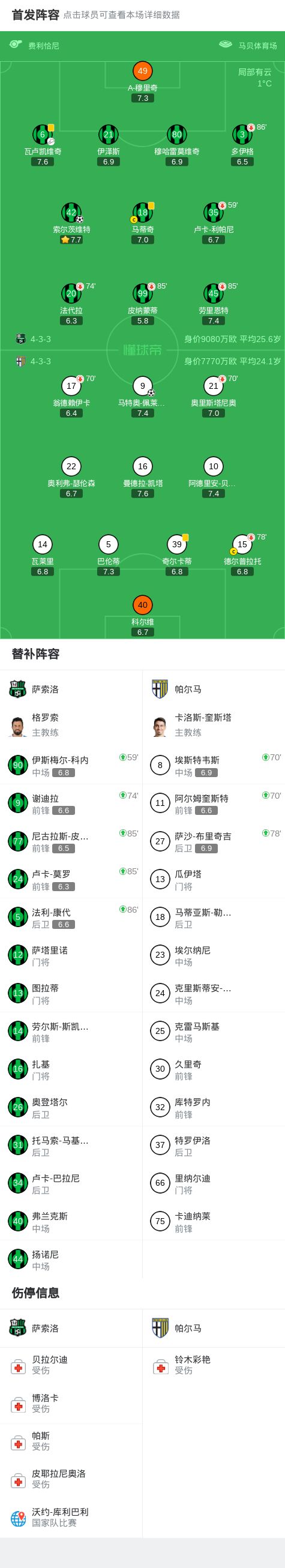 萨索洛11帕尔马,索尔茨维特首开记录,马特奥佩莱格里诺扳平