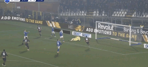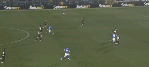 39′45″沃伊沃达右路晃开巴特萨吉后传中,中路达库尼亚从弗法纳和托莫里之间杀出,近距离射门被麦尼昂下意识挡开并靠二次反应破坏了补射。而这个熟悉的进攻跑位套路上一场戈森斯就完成了两次之多。