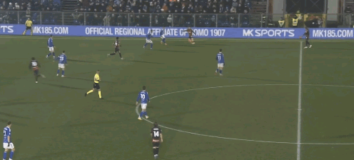 科莫门将布特斯一脚直塞就让队友直接面对米兰的后卫。