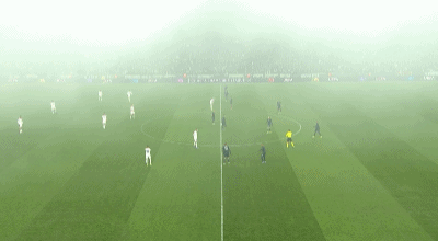 第12分钟,霍伊伦禁区外远射打门,皮球稍稍打高