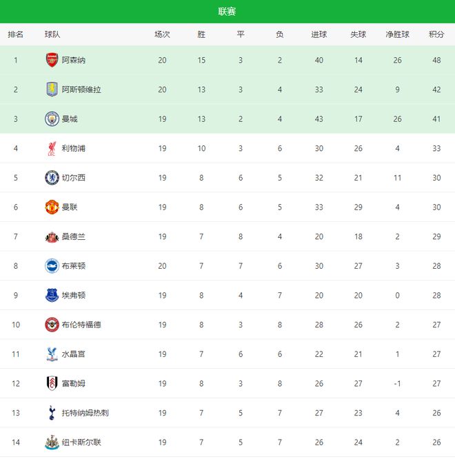 32,31!阿森纳狂飙,维拉强势复苏,英超最新积分榜:狼队首胜