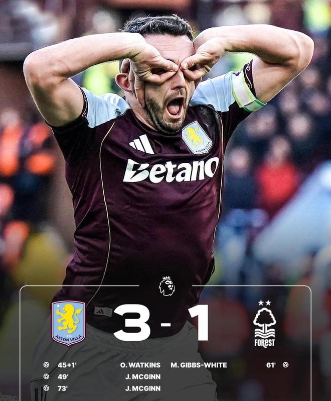但第73分钟,门将维克托出击失误,麦金再下一城,完成梅开二度,彻底杀死比赛。最终,阿斯顿维拉3-1拿下森林队,全取3分。
