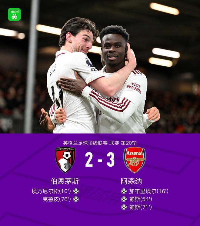 剑南春阿森纳32伯恩茅斯,赖斯双响,加布里埃尔破门+送礼