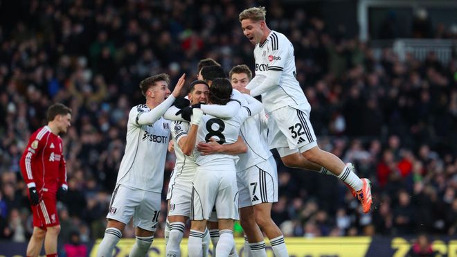1分钟后,利物浦的角球制造威胁,麦卡利斯特的头球砸在横梁上,富勒姆逃过一劫。