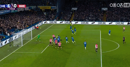 第90+3分钟,布伦特福德左路起球传门前,福法纳倒地解围
