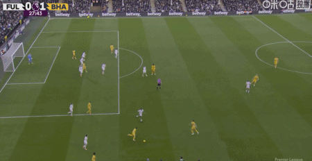 第28分钟,阿亚里内切劲射破门,布莱顿1-0富勒姆