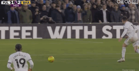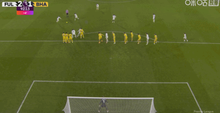 第90+2分钟,哈里-威尔逊任意球直接破门,富勒姆2-1布莱顿