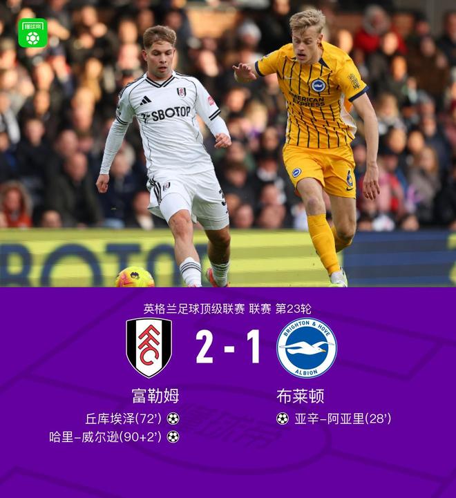 富勒姆21布莱顿,哈里威尔逊绝杀,阿亚里破门难救主