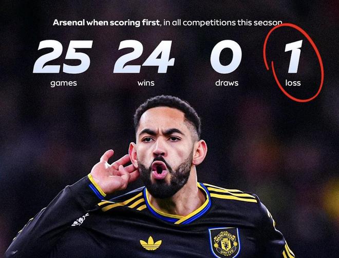 阿森纳本赛季首次输掉先进球的比赛,此前24场全胜