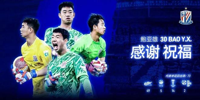 鲍亚雄,2023年4月加盟申花,共计为球队出战正式比赛70场,帮助球队获得2023年中国足协杯冠军以及2024、2025年中国超级杯冠军。