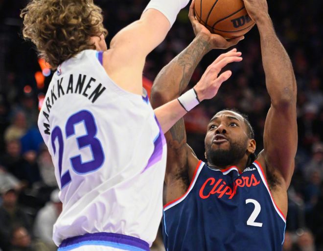 赛前快船方面宣布,遭遇脚踝扭伤的邓恩可以出战,伦纳德也坚持带伤(左膝挫伤)出场。先看一下比赛,开场贝利和乐福就下三分雨,爵士打出10-0的小高潮。科林斯上反篮打进,祖巴茨勾手,科迪继续扔三分,祖巴茨防不出来,就漏他这一点。中段爵士最多领先11分,伦纳德补篮+科林斯三分打停爵士。后半段科利尔和科迪火力全开,巴图姆三分止血后,哈登补篮,爵士继续发力,菲利波夫斯基和李凯尔打出小高潮,第一节快船18-29落后。进入第二节,伦纳德率先命中三分,此后继续高难度翻身跳投。