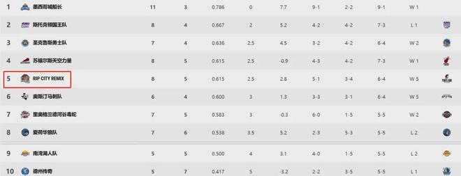 撕裂之城混音目前的战绩是8胜5负,高居NBA发展联盟15支球队里面的第5,放眼全联盟也算中、上游的表现。