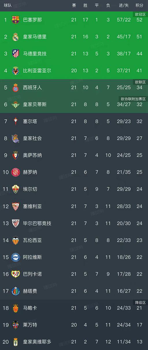 - 百度搜索:西甲第21轮结束了所有比赛,最新积分榜如下!